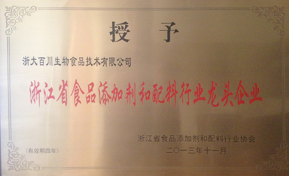 浙江省食品添加劑和配料行業龍頭企業(2013)