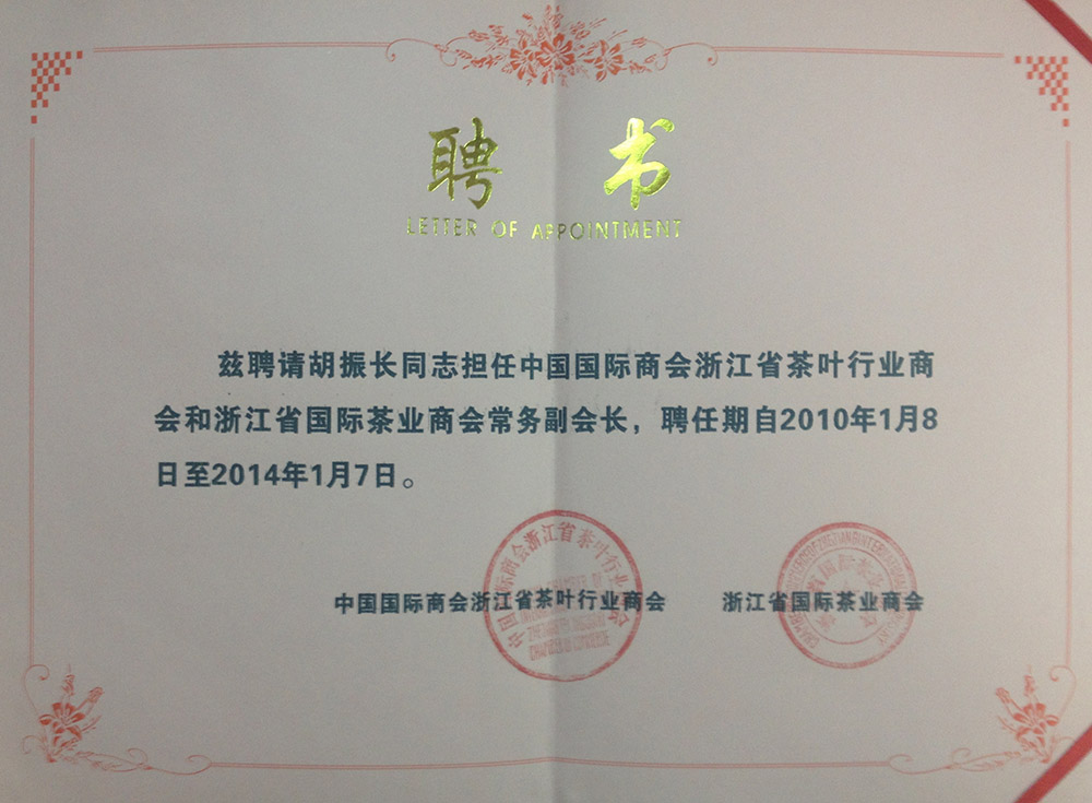 浙江省國際茶葉商會常務副會長單位(2010)