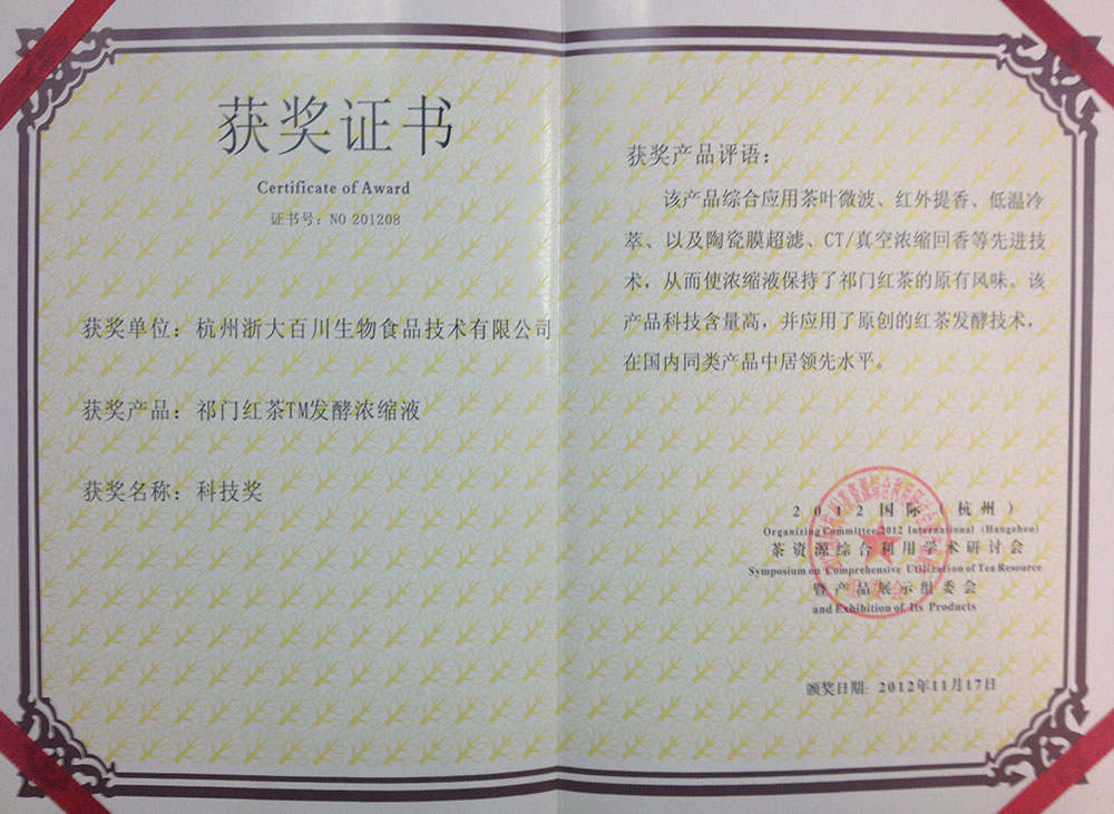 祁門紅茶發酵濃縮液——科技獎(2012)