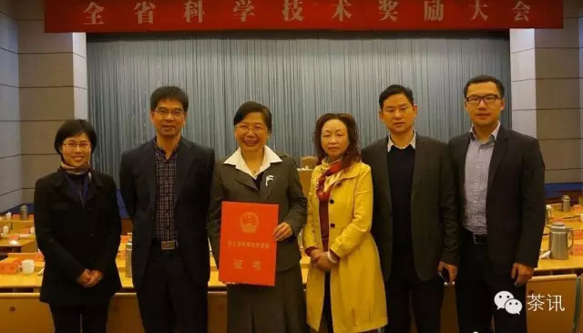 會(huì)上頒布了2014年度浙江省科學(xué)技術(shù)獎(jiǎng)勵(lì)獲獎(jiǎng)人選和項(xiàng)目。2014年度省科學(xué)技術(shù)進(jìn)步獎(jiǎng)授獎(jiǎng)項(xiàng)目255項(xiàng),其中一等獎(jiǎng)19項(xiàng),二等獎(jiǎng)81項(xiàng)。浙江大學(xué)茶學(xué)系屠幼英教授、須海榮副教授、李博博士、吳媛媛副教授等完成的“生物催化技術(shù)重組并強(qiáng)化茶深加工制品的功能及其產(chǎn)業(yè)化”榮獲浙江省科技進(jìn)步獎(jiǎng)一等獎(jiǎng)。此成果為浙江省茶葉界建國(guó)以來的第一個(gè)浙江省科技進(jìn)步一等獎(jiǎng),是茶葉產(chǎn)學(xué)研合作的成功示范。